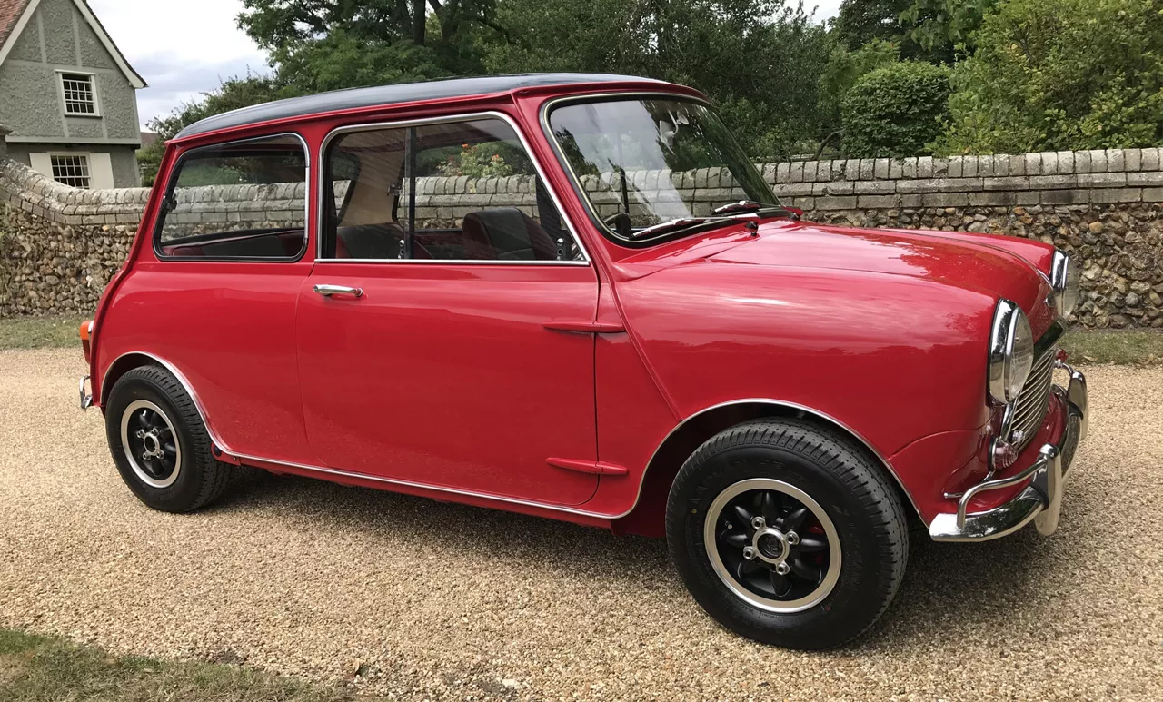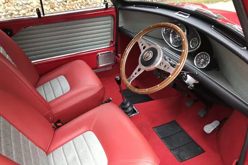 Mk1 Cooper finished in Tartan Red with a Black roof. This car has been totally restored to a show-winning example with stacks of trophies to prove. Two complete picture files from start to finish which shows every step when the car was restored, this also confirms the car is a genuine 66 shell unlike most! Since being restored this Mini has gone on to win multiple shows and is a well-known car to the Cooper resister. The paintwork holds a fantastic deep shine with NO rust or defects to be found, the car has also been professionally detailed to protect the paintwork. Inside is in pristine condition, few small touches such as recliners, moto-lita steering wheel, and a rev counter.
