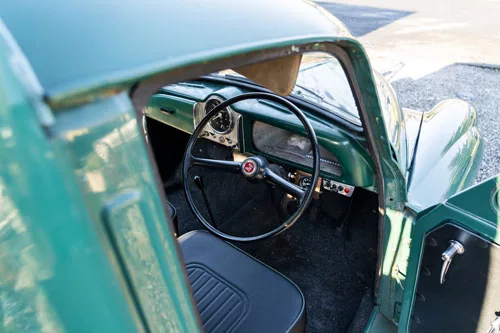 Upon opening the doors to this quirky Morris Minor, you’re greeted by a tidy interior, which greatly benefits from the current keeper’s re-trimming work. Both front seats are in excellent condition, and reflect absolute minimal use with no concerning defects to observe. Door cards and carpeting throughout the cabin follow suit, although the latter would no doubt be further elevated with a thorough detail.