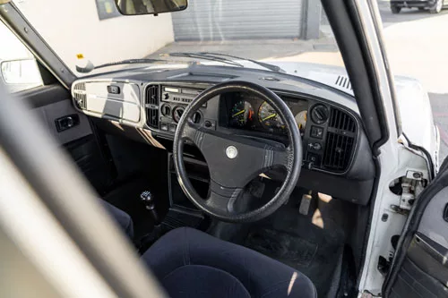 A peek inside the cabin of this Saab 900 reveals a rather well-preserved interior, which seemingly shows far fewer signs of age than you would perhaps expect. It’s also quite well equipped, boasting the likes of heated seats, electric windows, and a Blaupunkt head unit.