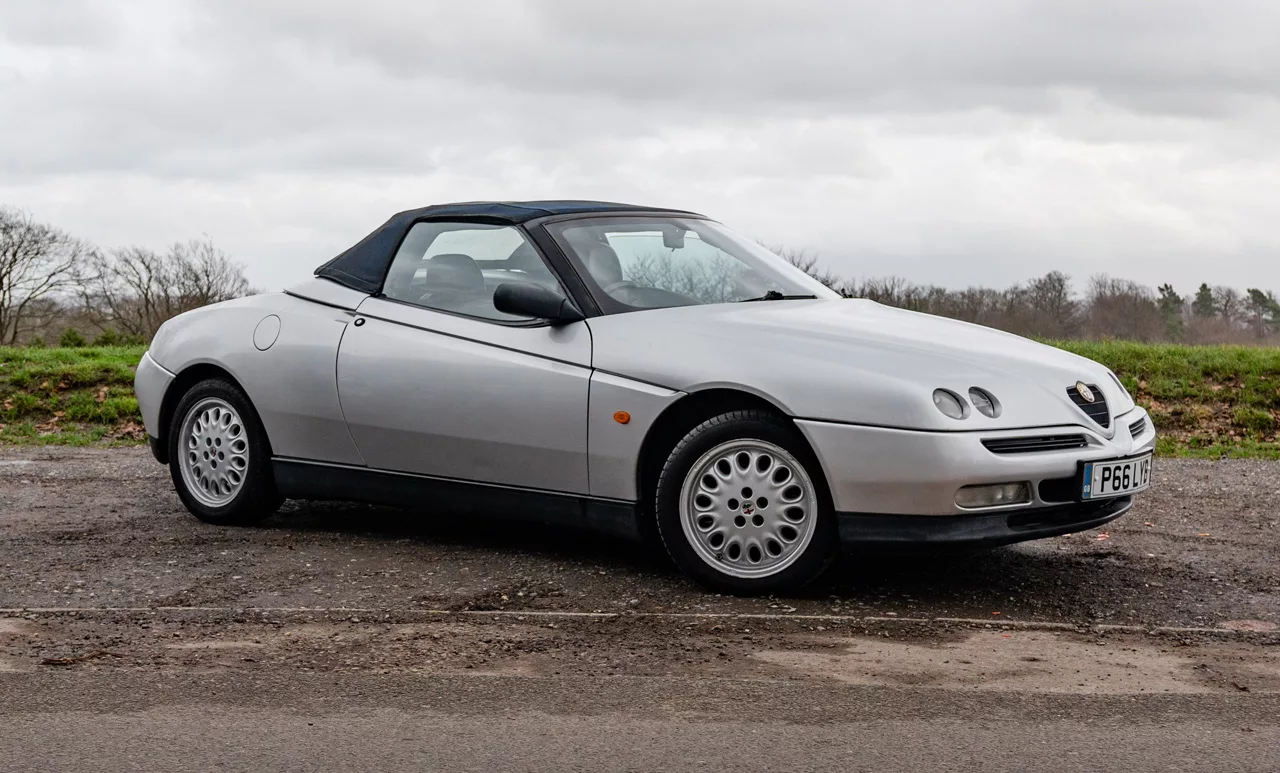 The Alfa Romeo spider/GTV (GTV being the non-convertible offering) was designed by Enrico Fumia at Pininfarina in the early 1990s, being released in 1995 and ending production in 2005, in these 10 years of production the spider won a grand total of ten awards such as 1995 car of the year from Autocar. Sharing quite a lot of its characterises and components as the Alfa 155 which adds real pedigree to this Italian stallion. There was three ‘phases’ or facelifts of the spider this being the phase one it sports the most classic look. If you remember these cars they were a seriously interesting alternative to the Japanese and German roadster offerings, and the sale numbers do show, these spiders sold quite well, but unfortunately not many of them made it to the uk.