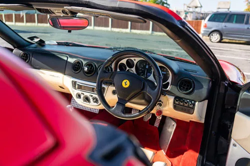Seemingly aiming to provide a driver-focussed environment, this 360 Spider shows off a very practical interior, without the need for unnecessary luxuries. As you would perhaps expect given the mileage of the vehicle, the cream interior presents itself in excellent condition, with only a few minor signs of age.